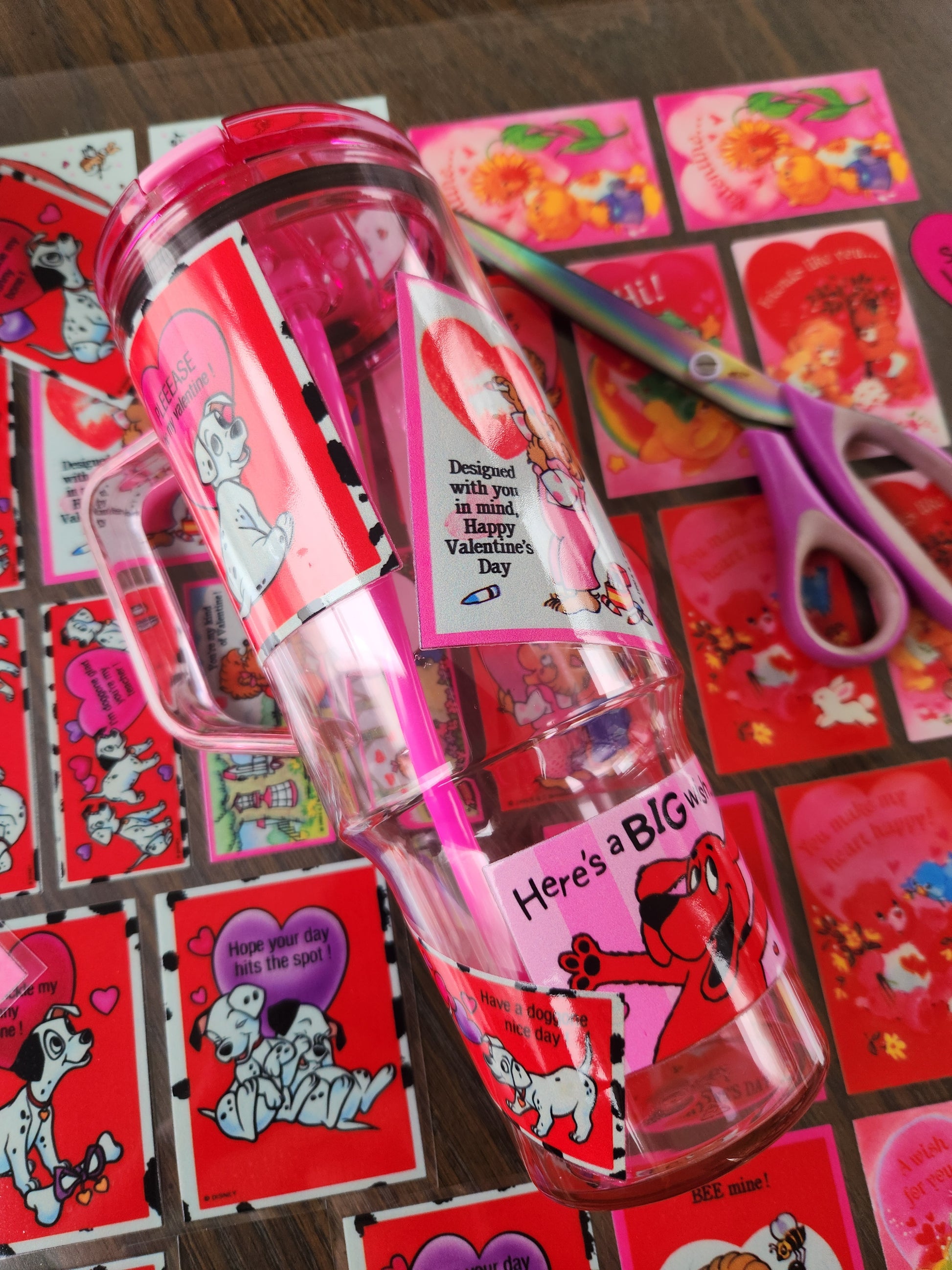 Make every sip feel like puppy love with our 40oz Retro Valentine's Tumbler! This acrylic tumbler comes adorned with charming retro childhood valentine cards, adding a touch of nostalgia to your daily routine. Stay hydrated in style with this playful and functional tumbler. XOXO!