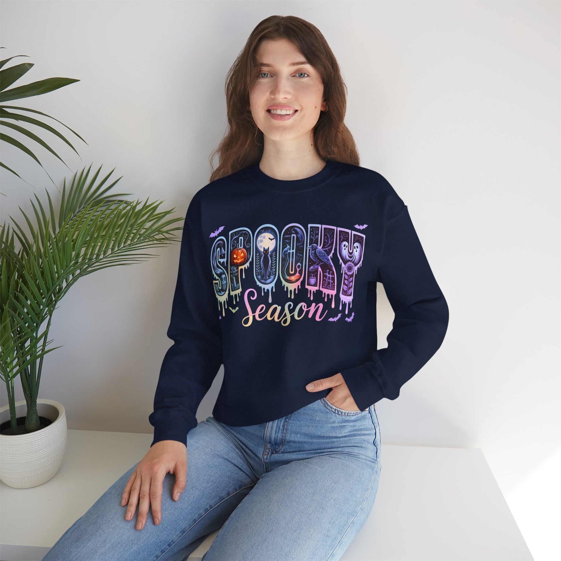 Embrace the cozy vibes of the season with this stylish crewneck sweatshirt. Perfect for chilly nights or festive gatherings, it features a fun and whimsical "Spooky Season" design that captures the spirit of Halloween. The classic fit and soft fabric make it an ideal choice for those looking to blend comfort with trendy style. Whether you're lounging at home, heading to a Halloween party, or carving pumpkins with friends, this sweatshirt adds a playful touch to your autumn wardrobe. It’s perfect for adults who love to celebrate the festive season with flair. Great for Halloween parties, casual get-togethers, or just cozy nights in with a good movie!