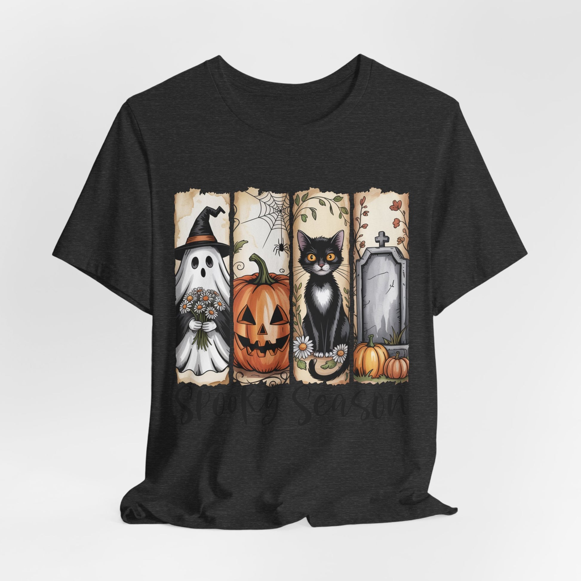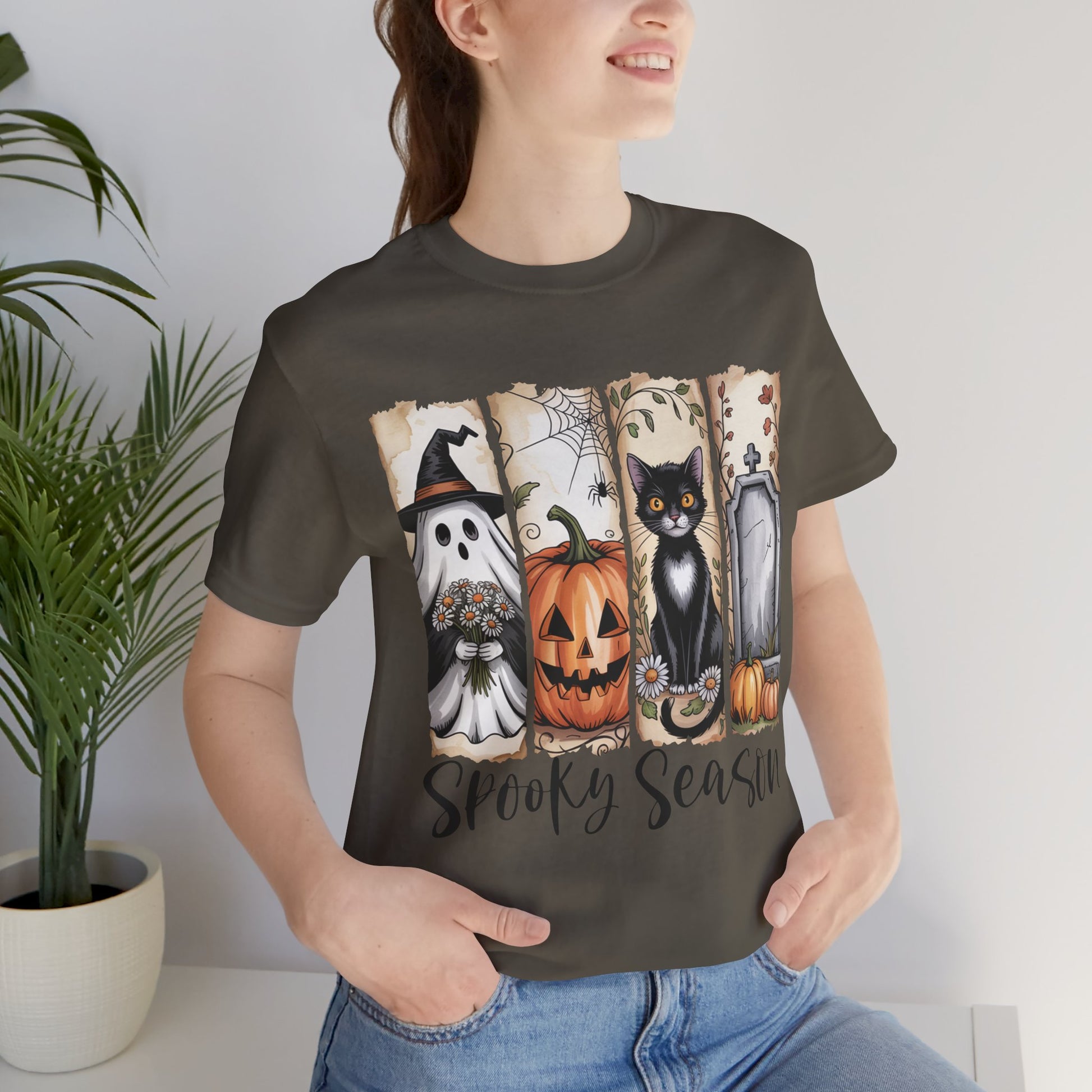 This Unisex Jersey Short Sleeve Tee is perfect for embracing the festive spirit of Halloween. Featuring a charming design with playful ghosts, pumpkins, and a black cat, it radiates a whimsical and spooky vibe. Ideal for casual outings, cozy Halloween gatherings, or just lounging at home, this tee adds a touch of fun to any wardrobe. It’s perfect for all ages, making it a great gift for family and friends during the spooky season. This versatile shirt is perfect for Halloween parties, trick-or-treating, or simply celebrating the autumn festivities.