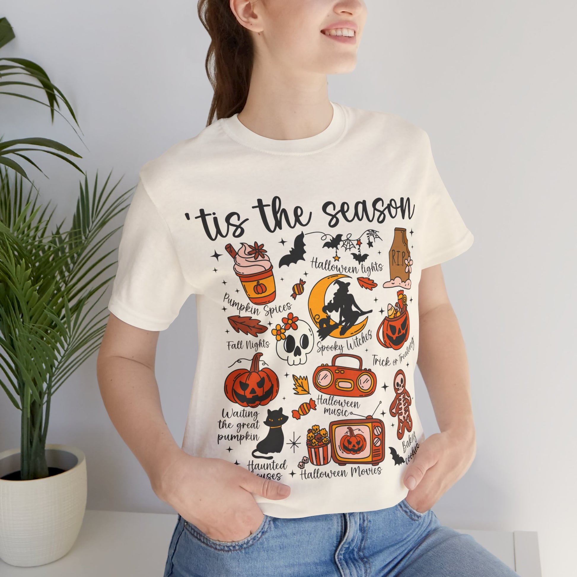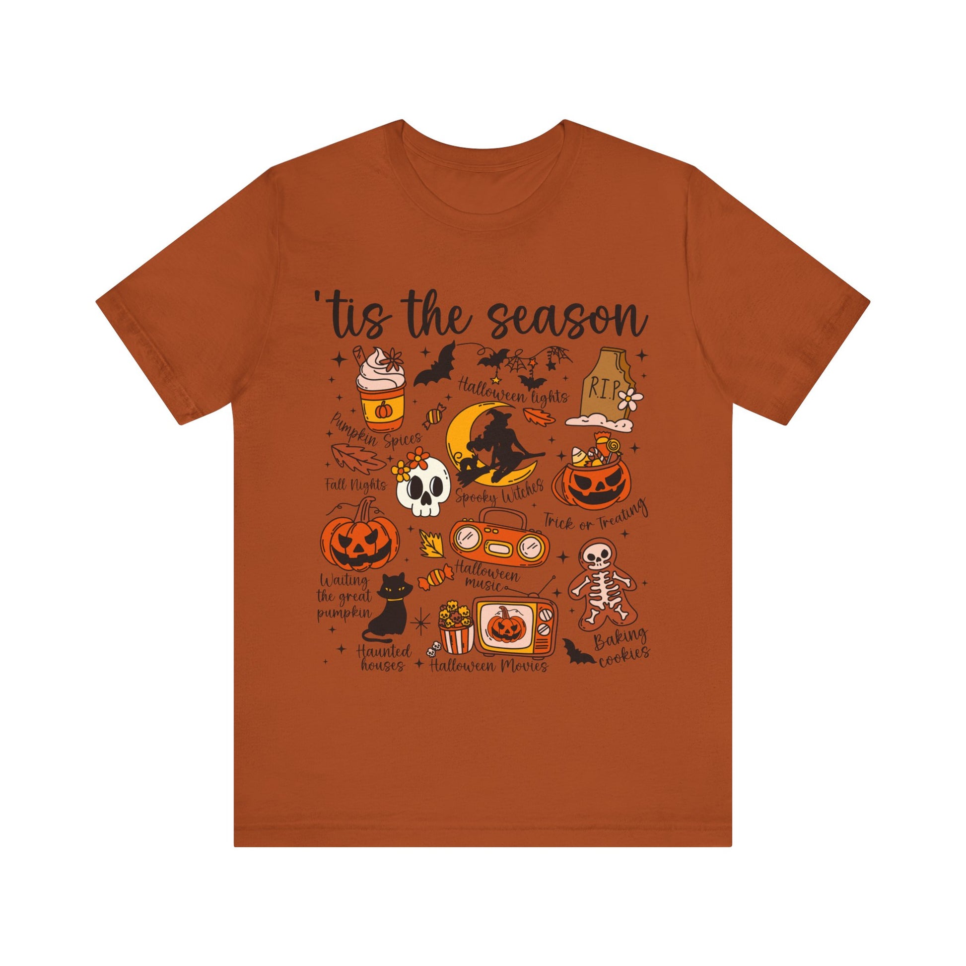 Celebrate the joyful spirit of the season with this fun Unisex Jersey Short Sleeve Tee. Perfect for autumn festivities, this tee combines comfort and style, offering a relaxed fit ideal for casual outings or cozy gatherings with friends. The lively design evokes a sense of nostalgia, making it a perfect addition to your fall wardrobe or Halloween celebrations. It's an excellent choice for costume parties, family gatherings, or just enjoying a pumpkin spice latte on a cool day. Great for anyone who loves a dash of whimsy and seasonal cheer in their attire, this tee is sure to bring smiles wherever you go!